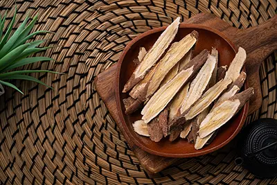 Astragalus is a Chinese root used to strengthen the immune system and tonify the lungs. It is also helpful as an “adaptogen” to protect against the negative effects of stress. Astragaloside IV is a notable compound extracted from this root, which regulates the immune system, protects cell membranes, and is an antioxidant and anti-inflammatory.[6] Astragalus can be taken in capsules, liquid tinctures, or by boiling the root. A nice autumn recipe with astragalus is change-of-season tea (see recipe section).