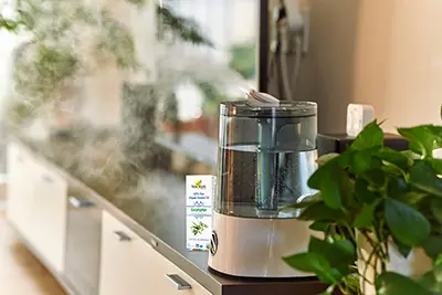 Humidifiers and Essential Oils. A dry house, workplace, or bedroom can be an immediate trigger for a cough. Depending on the ventilation of the building, heating and air conditioning units can take a significant amount of humidity out of the room. If you don’t have a humidifier, try hanging a wet towel around your bedroom. If the towel is perfectly dry when you wake in the morning, you know you need to add more humidity. Boil a pot of water on the stove and leave it on a coaster by your bedside. Add 1–2 drops of eucalyptus or lavender into the steaming water for added benefit.