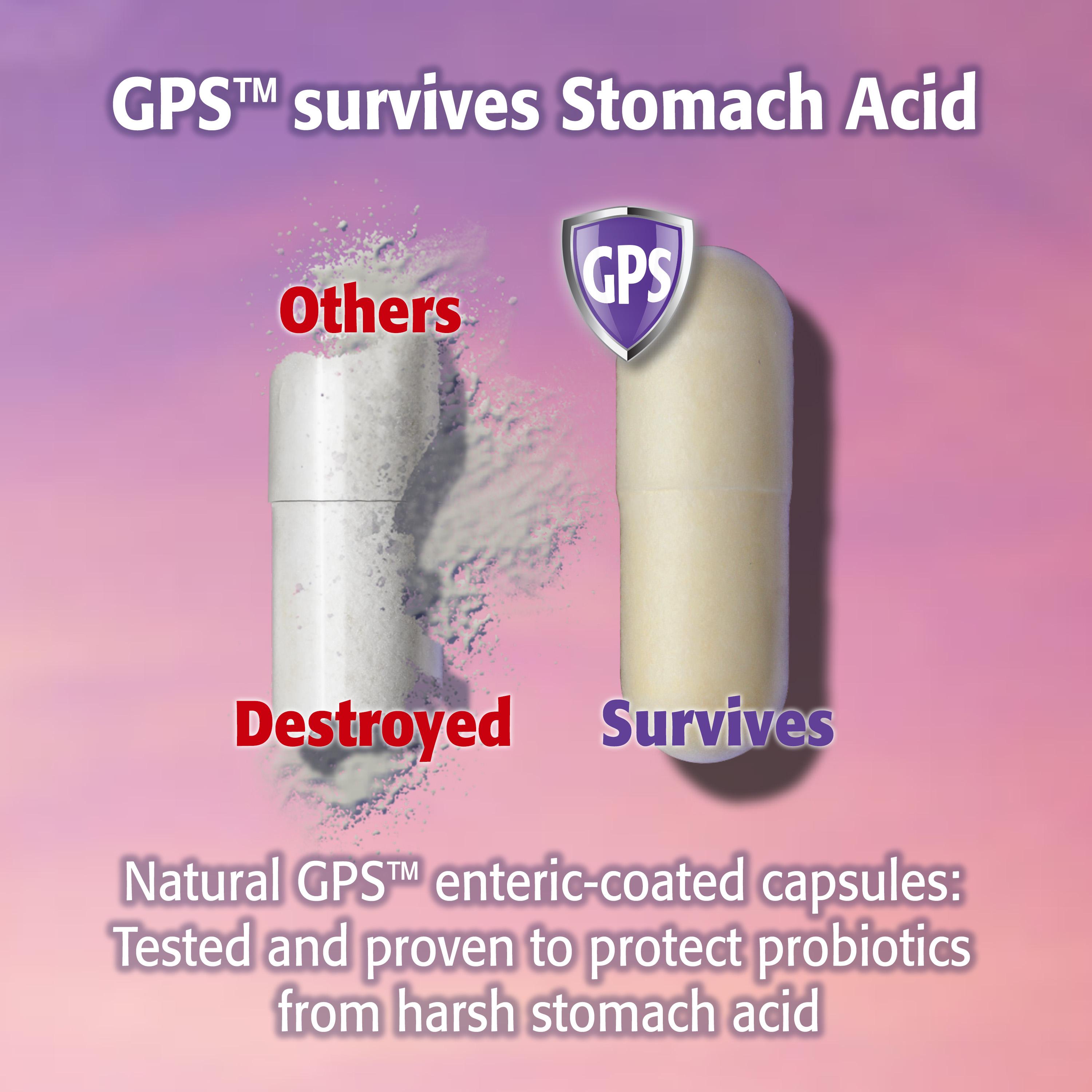 - GPS™ natural enteric coating ensures live probiotic delivery past stomach acid